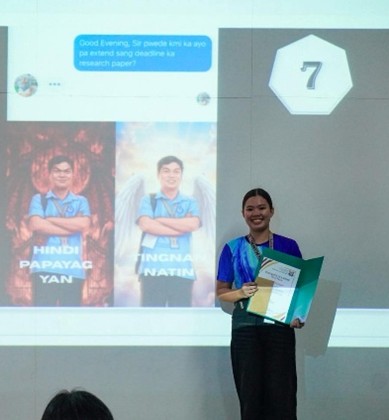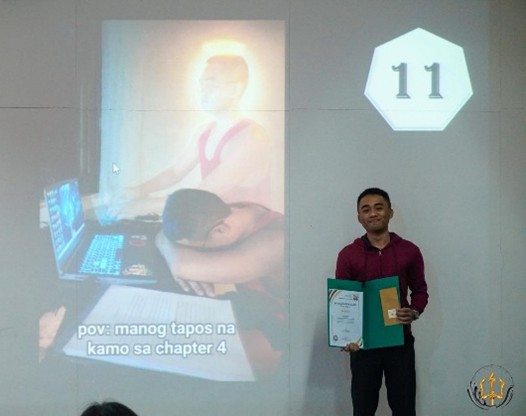 In the creative competitions, the winners in the Research in a Meme contest were the following (L to R): Neil Gerona – 1st Place, Kyle John Herida – 2nd Place, and Mary Galle Inayan – 3rd Place. Meanwhile, Jefferson Pedreso emerged as 1st Place winner in the Digital Journal Cover Design Contest, with Nekko Muega and Lyzhen Terencio placing second and third, respectively.